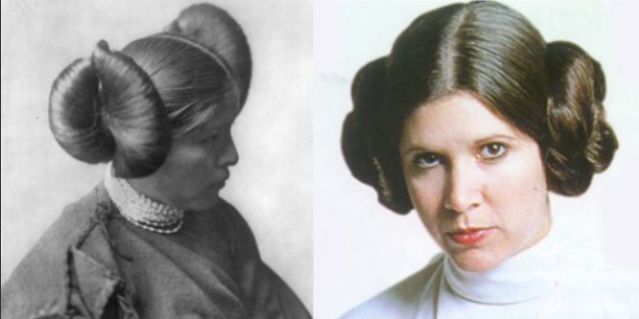 Kendra Van Cleave of Frock Flicks, a website which reviews the accuracy of costumes in historical dramas, told the BBC that while such buns had been fashionable in medieval Europe, the "most obvious" inspiration is the "squash blossom" style worn by women of the Hopi tribe in Arizona.